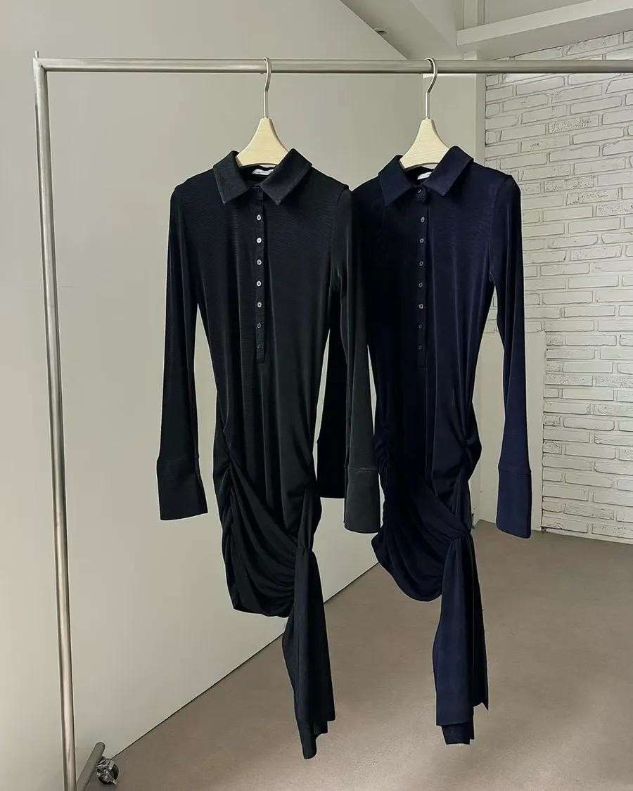 很大牌感的抓皺包臀、不對稱垂帶設計,