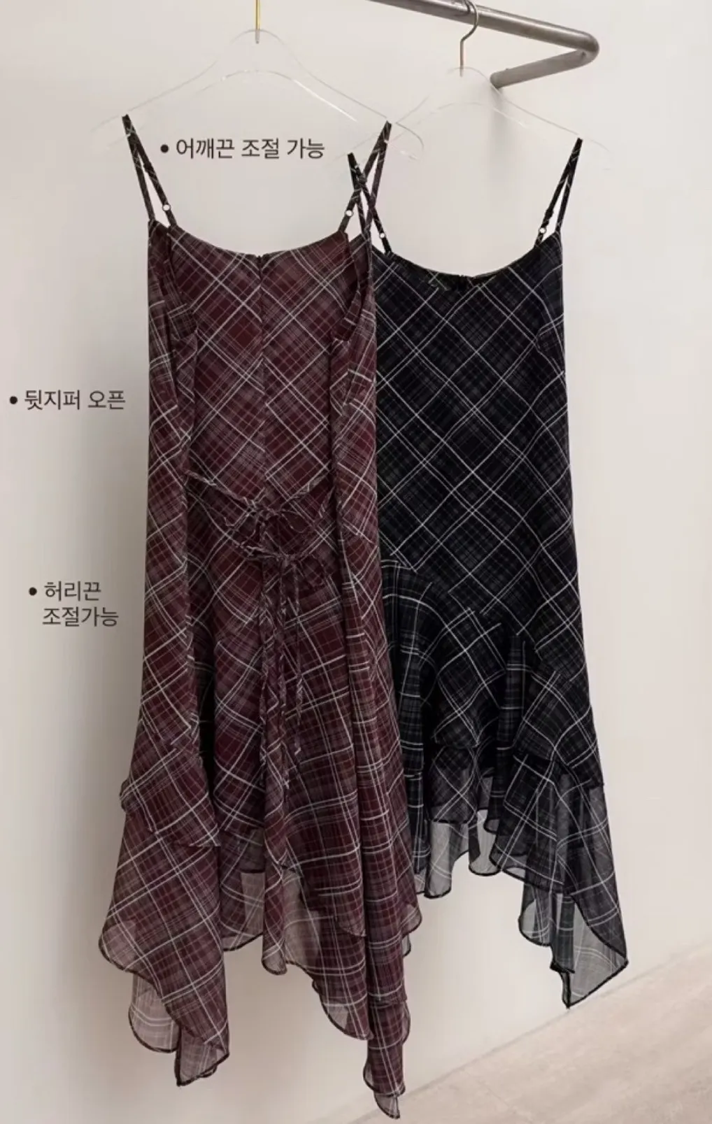 細肩帶可調整、後拉鍊方便穿脫,