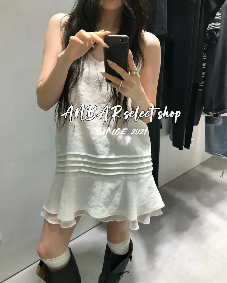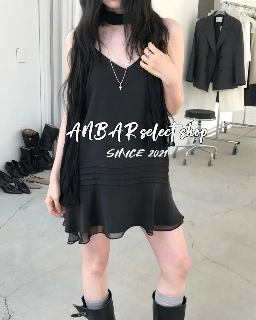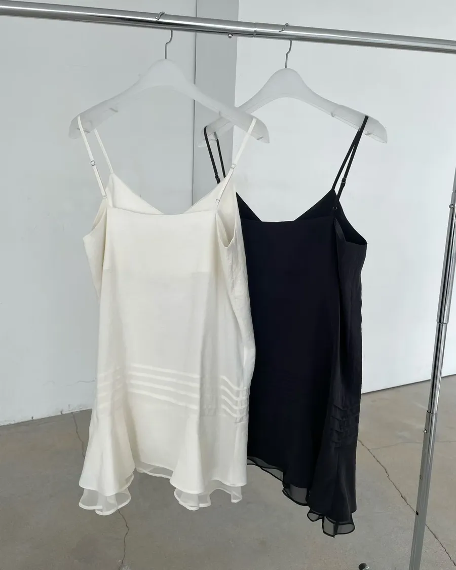 側邊隱形拉鍊方便穿脫、細肩帶可以調整。