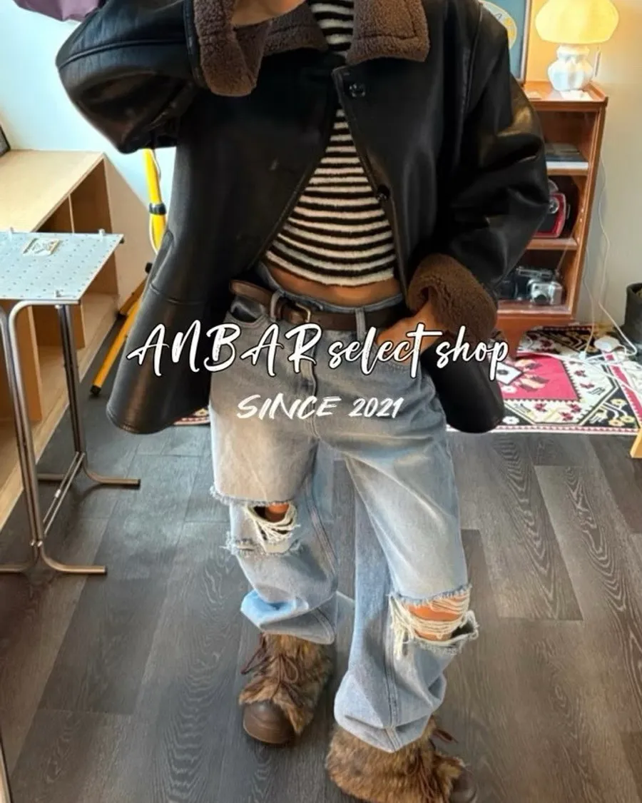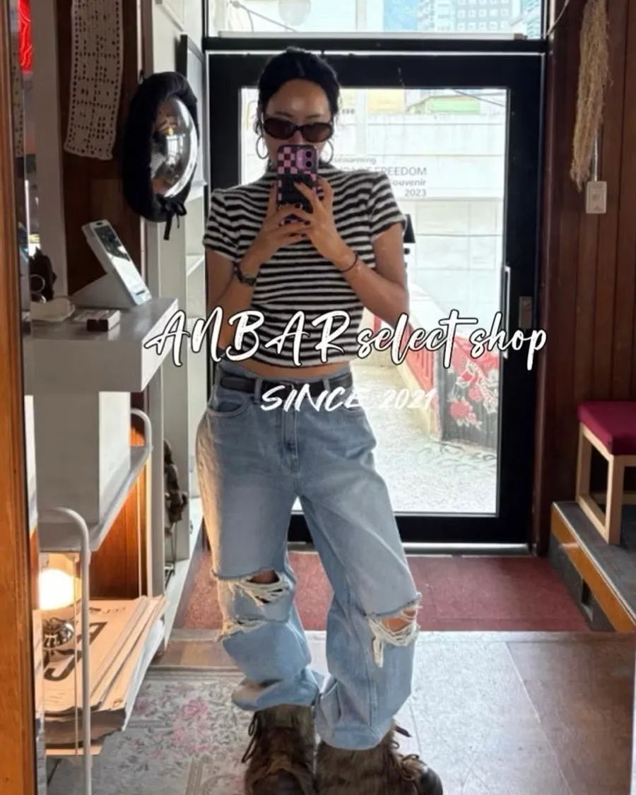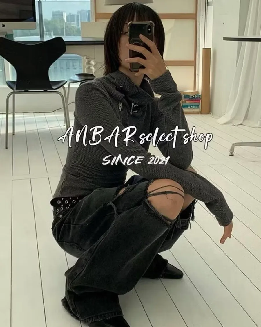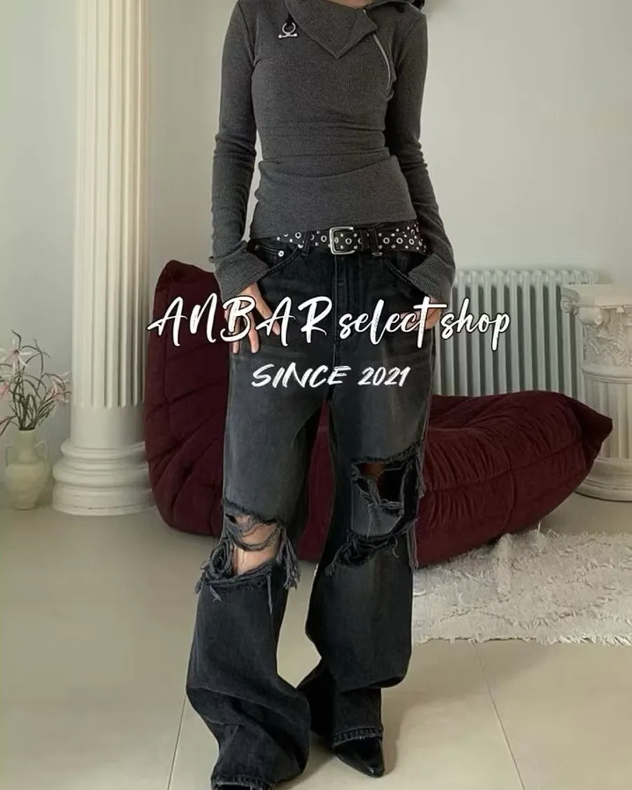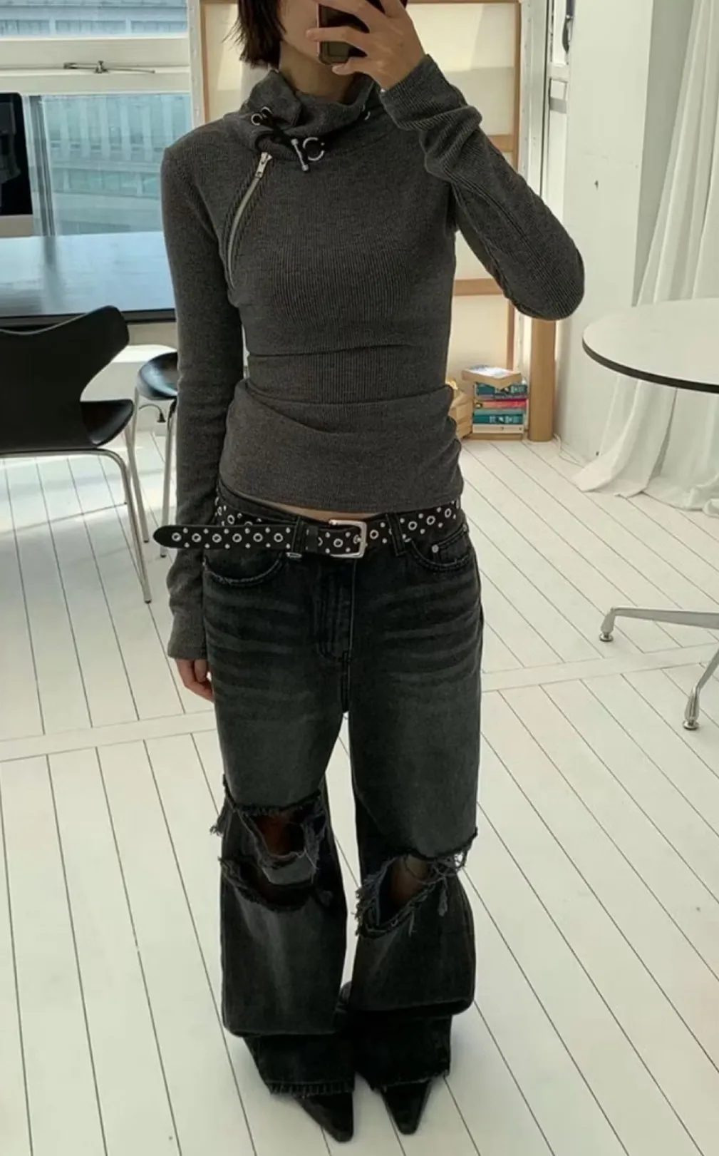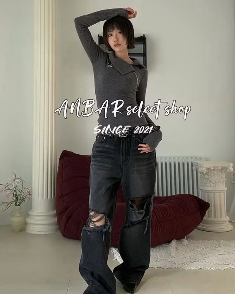 寬褲版型搭配不對稱刷破、破洞就是顯瘦,