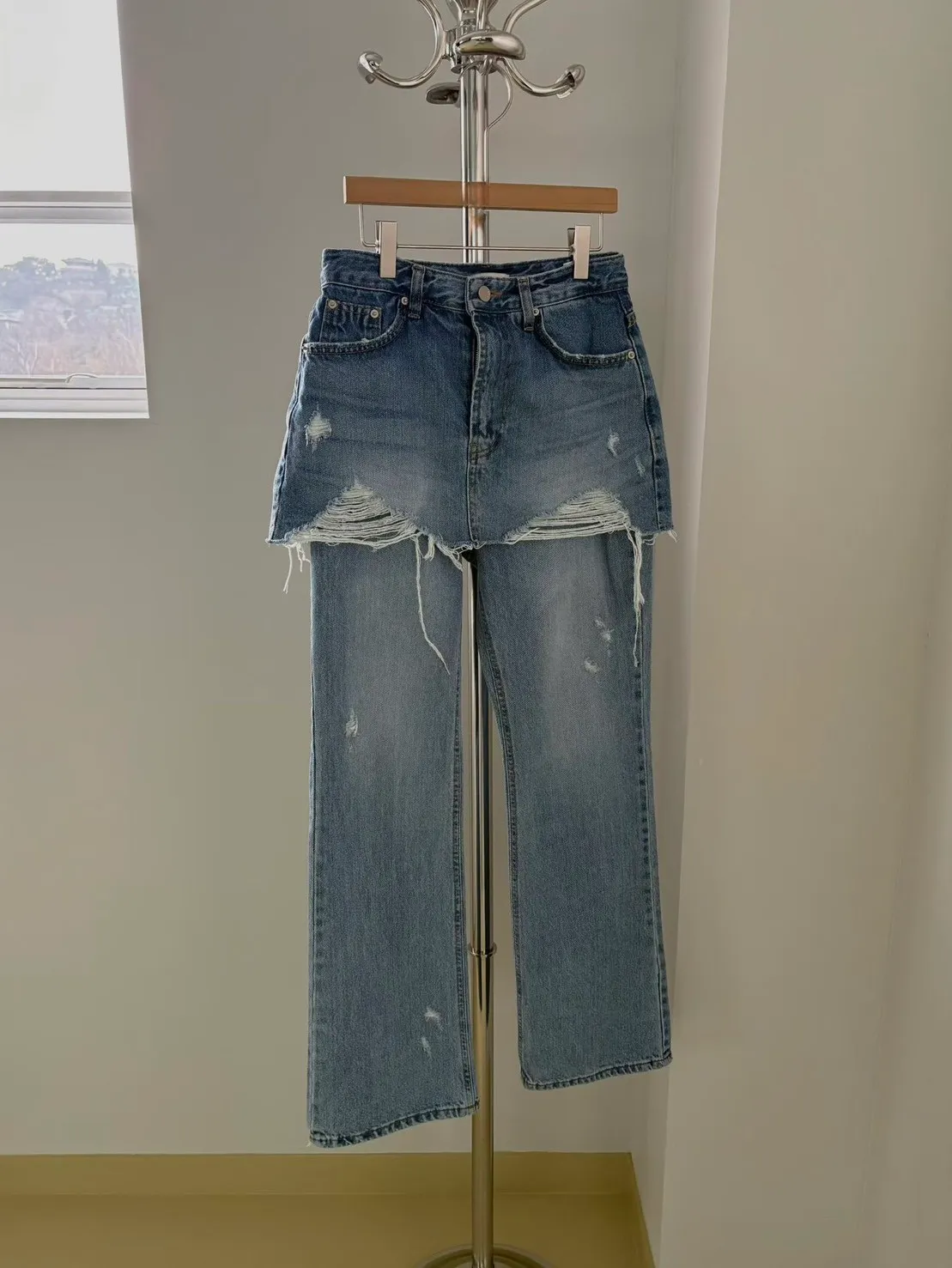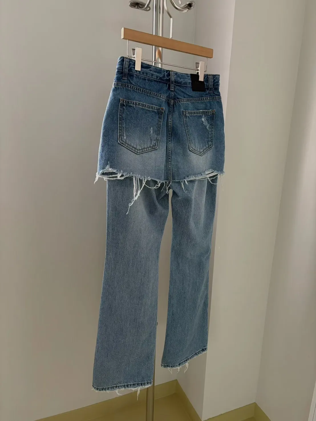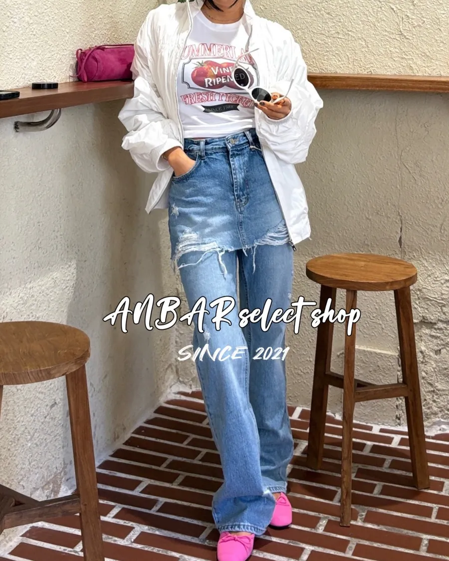今年春款很多品牌都有出的裙面拼接假兩件設計,