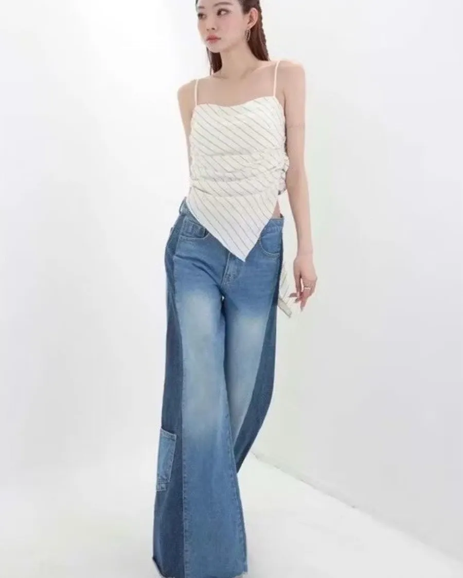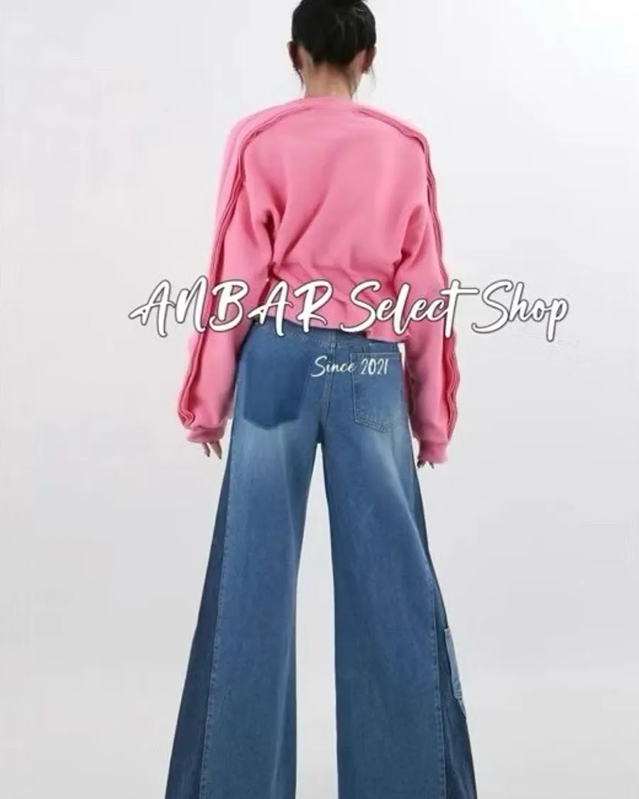 非常特別的設計感牛仔褲,多色拼接,側邊小口袋很好看,