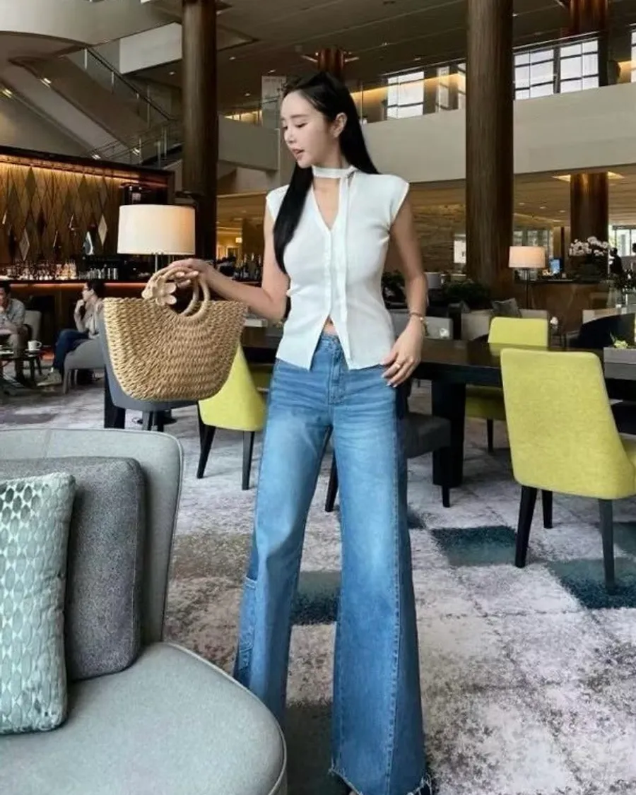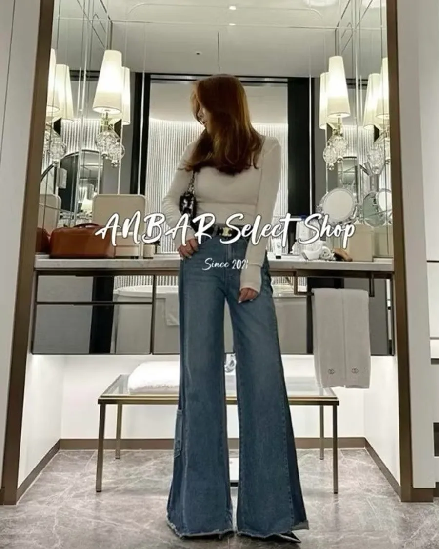 從大腿開始慢慢往下闊腿的喇叭版型,很顯瘦!