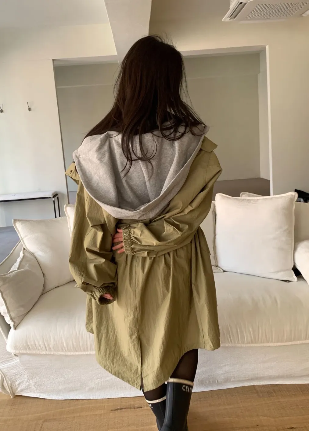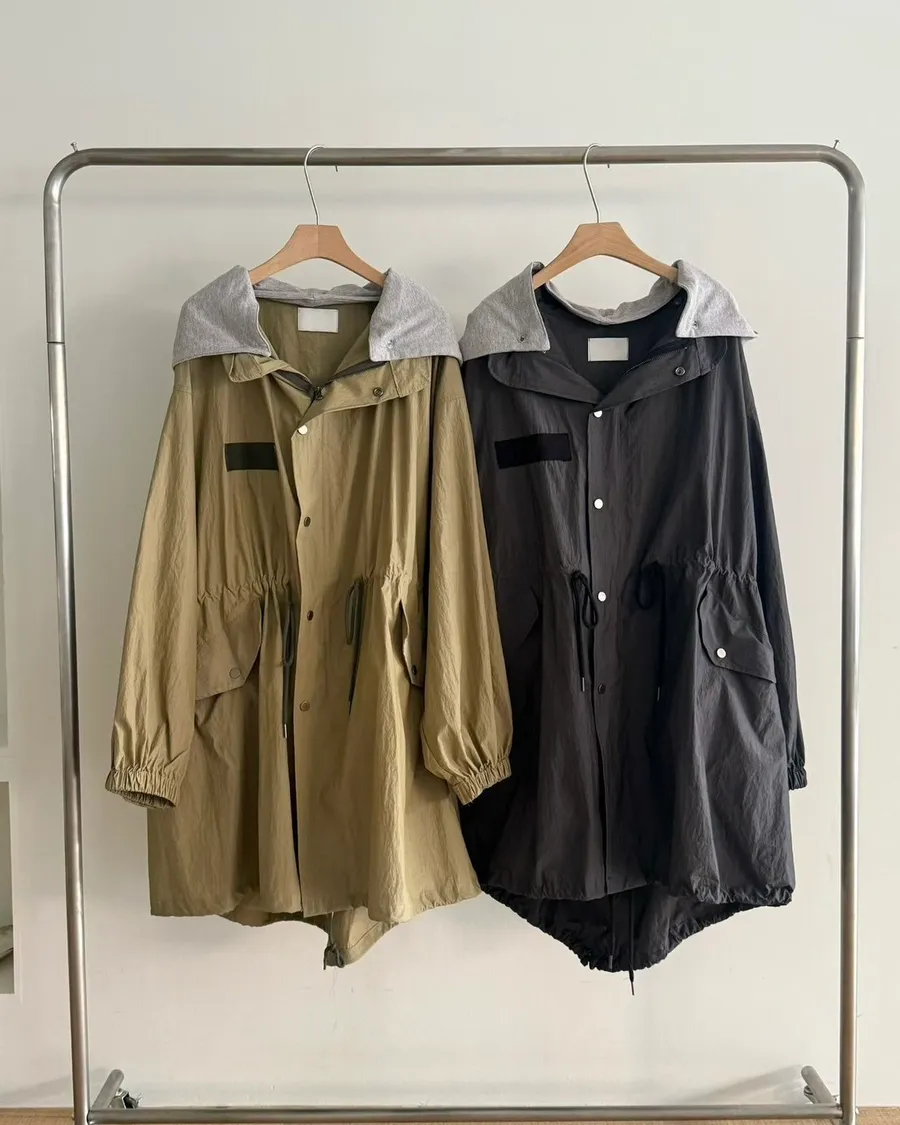 比較日感、工裝風格的長版風衣、軍外套,