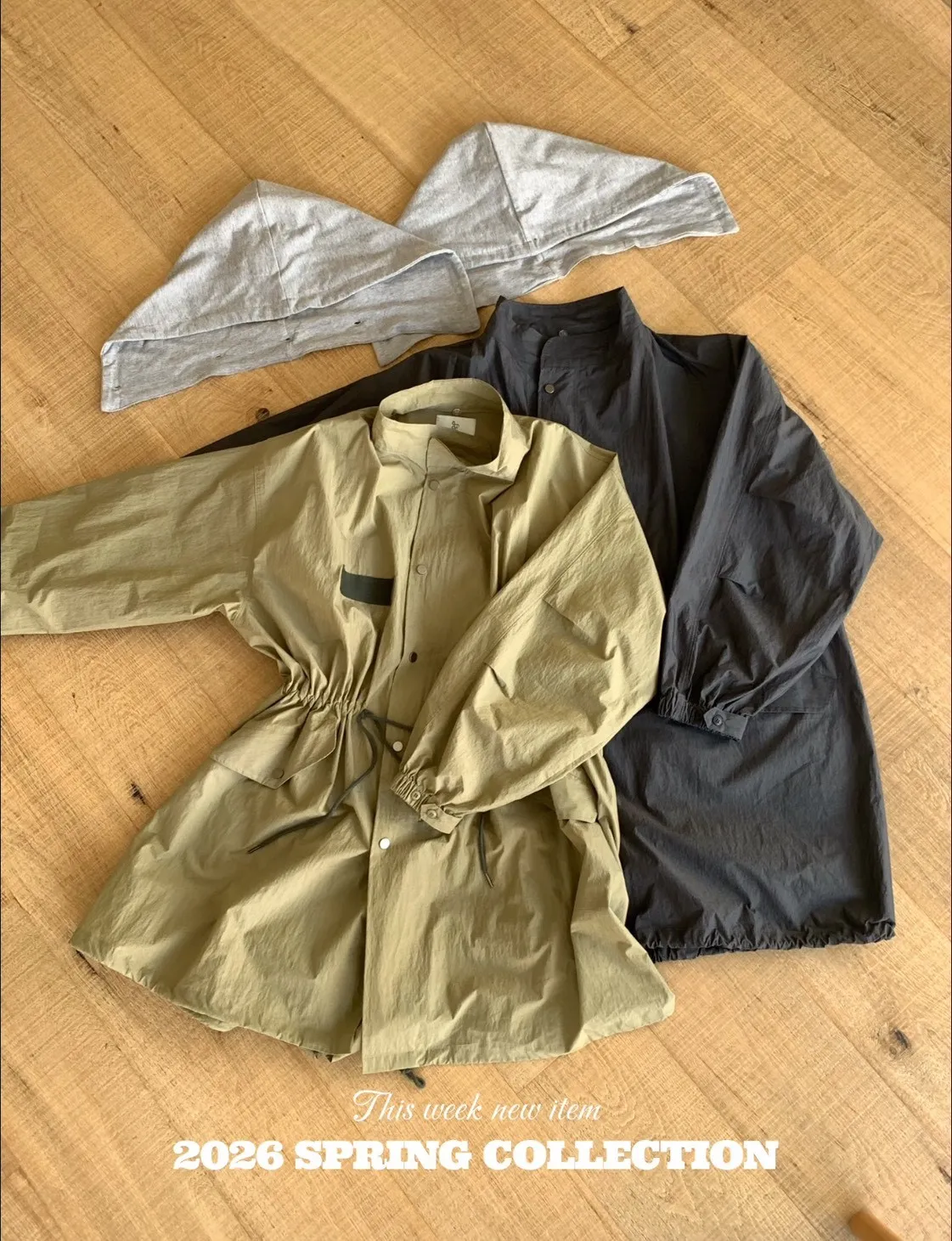 寬鬆、長版設計,抽繩可收腰細節,
