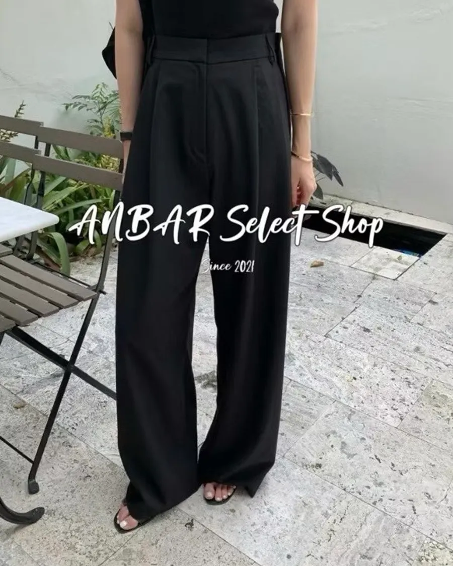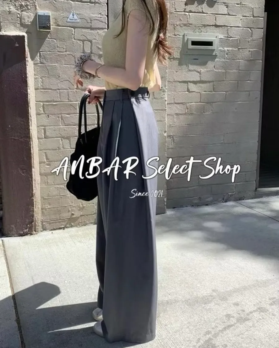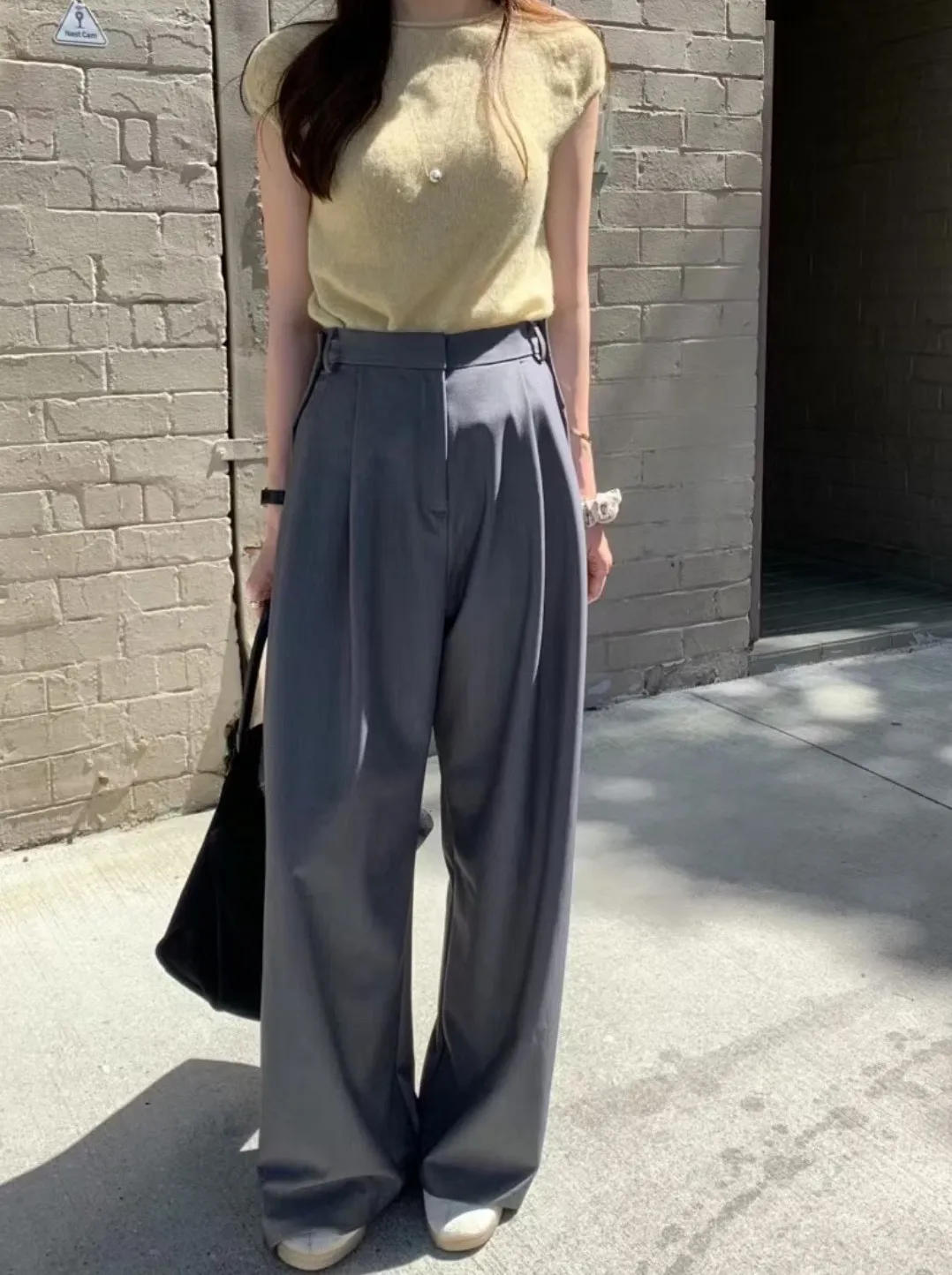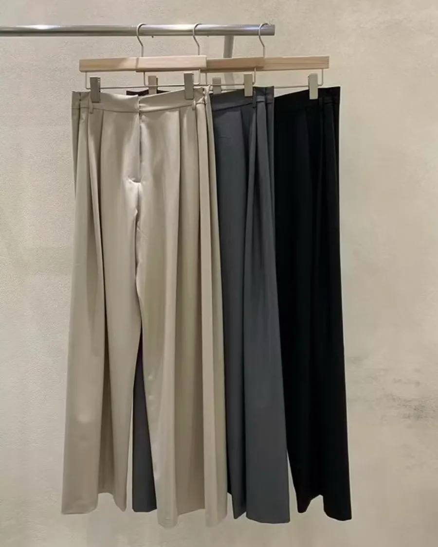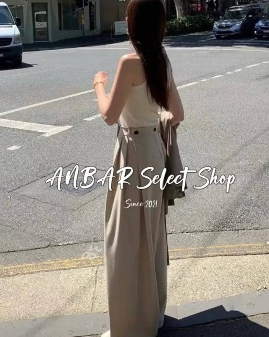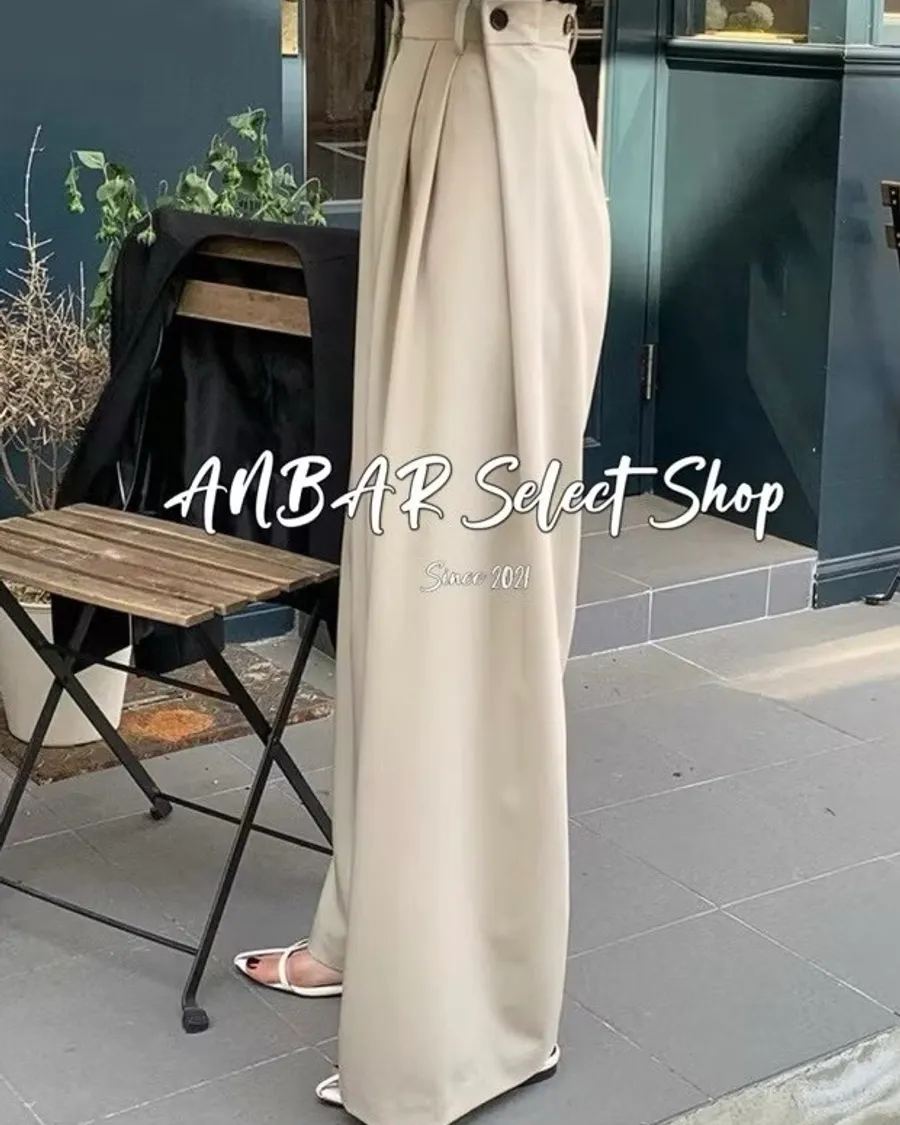 前面抓褶、後側鈕釦比較偏裝飾性質,有闊腿效果,