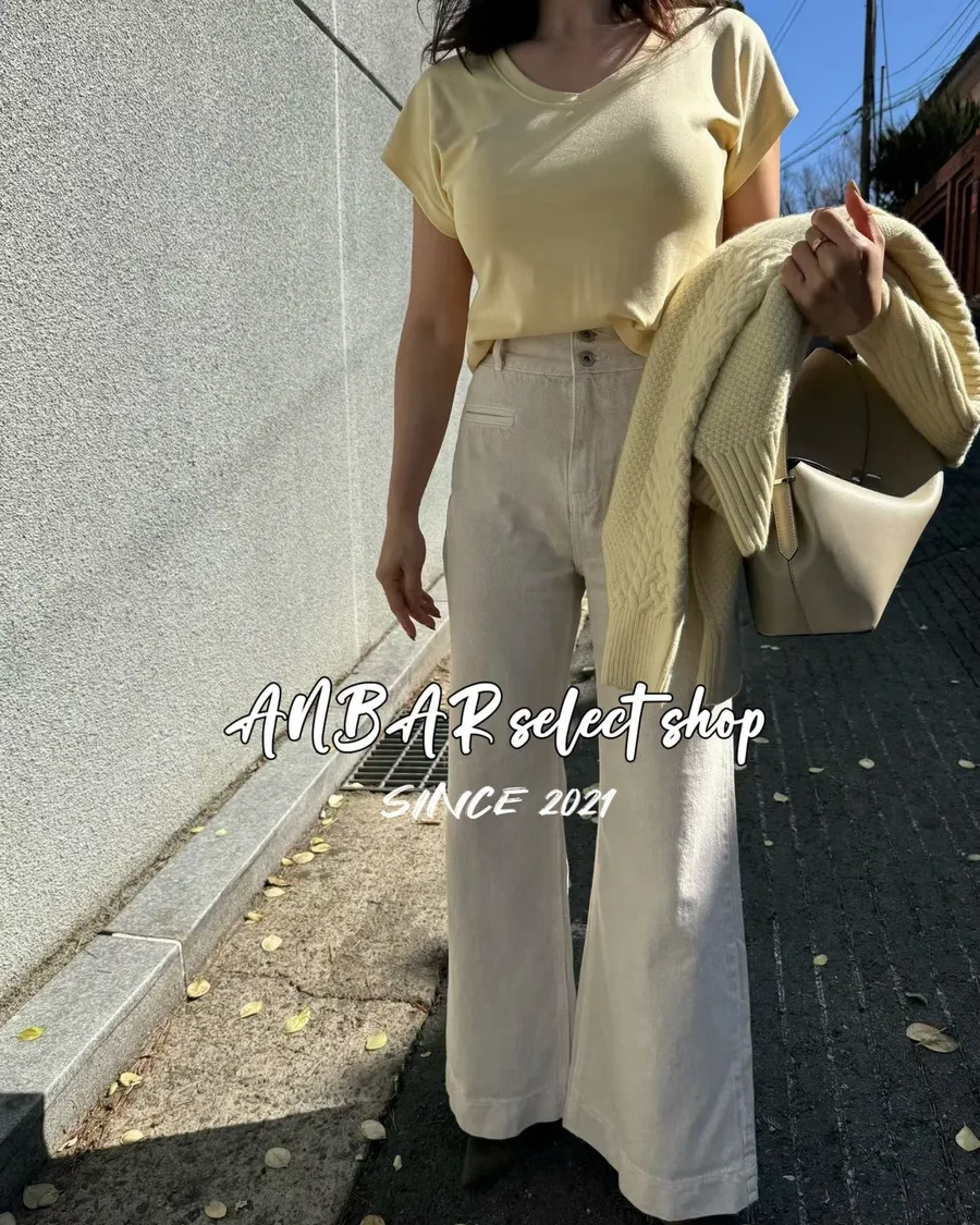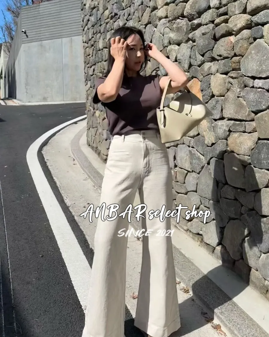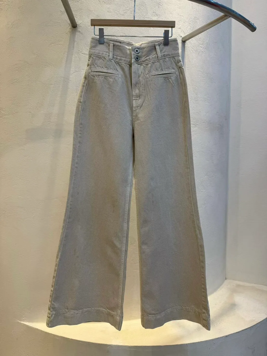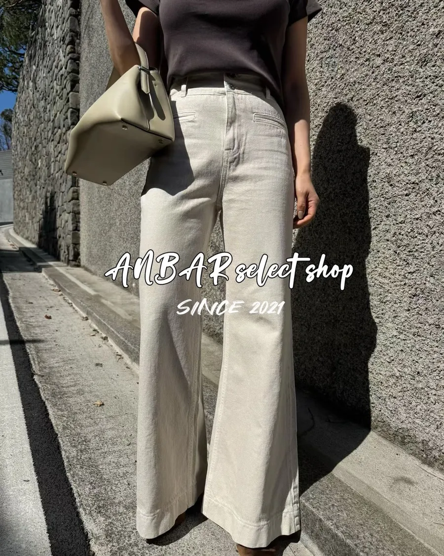 經典雙釦、高腰、微喇叭,很顯腿長的版型,