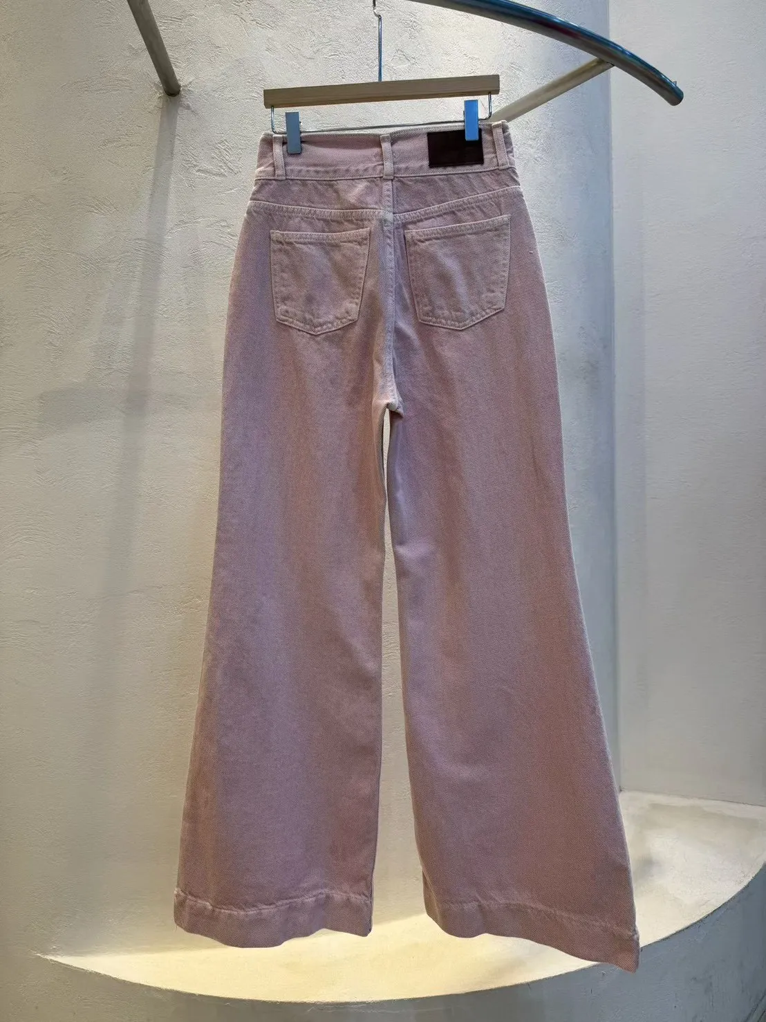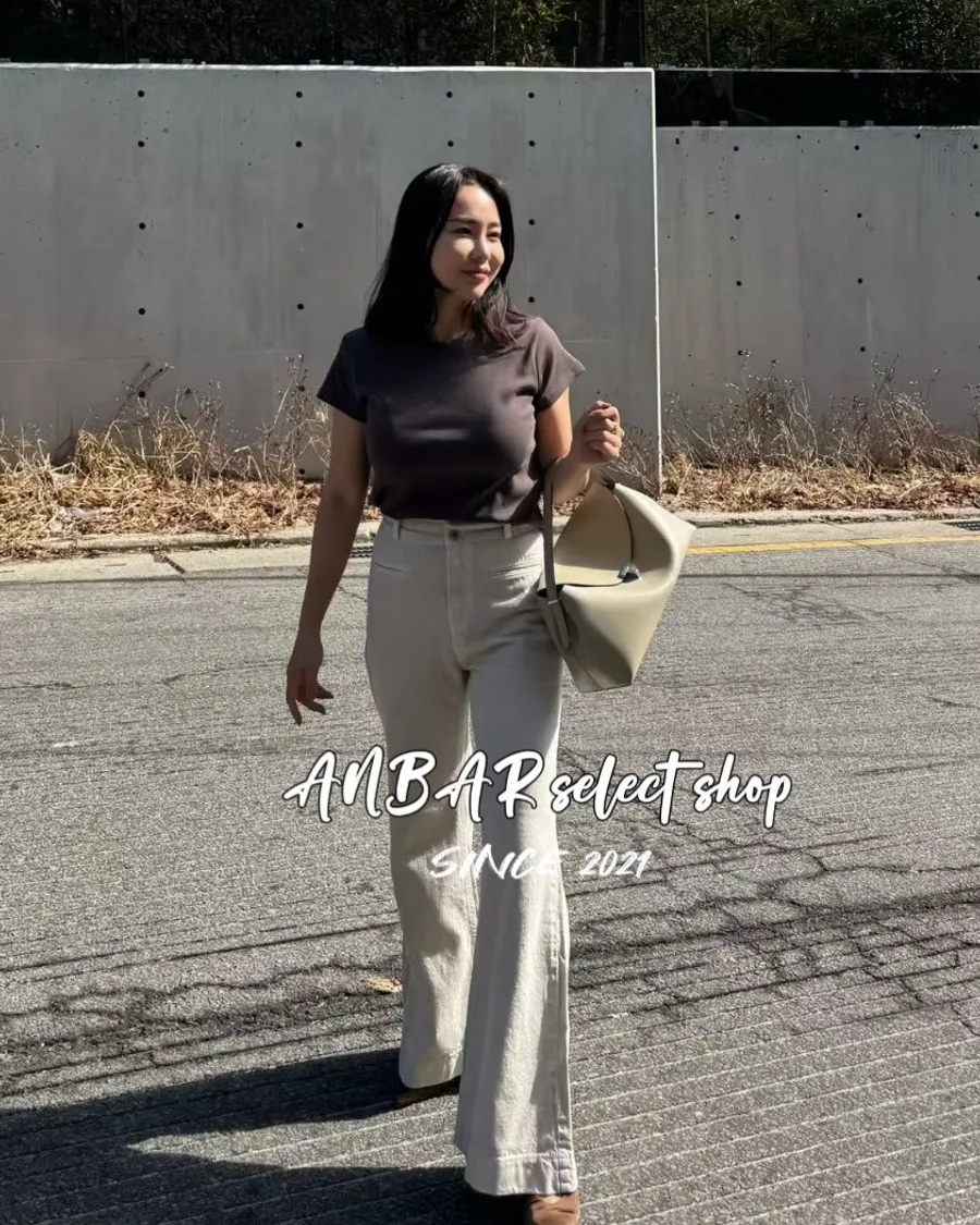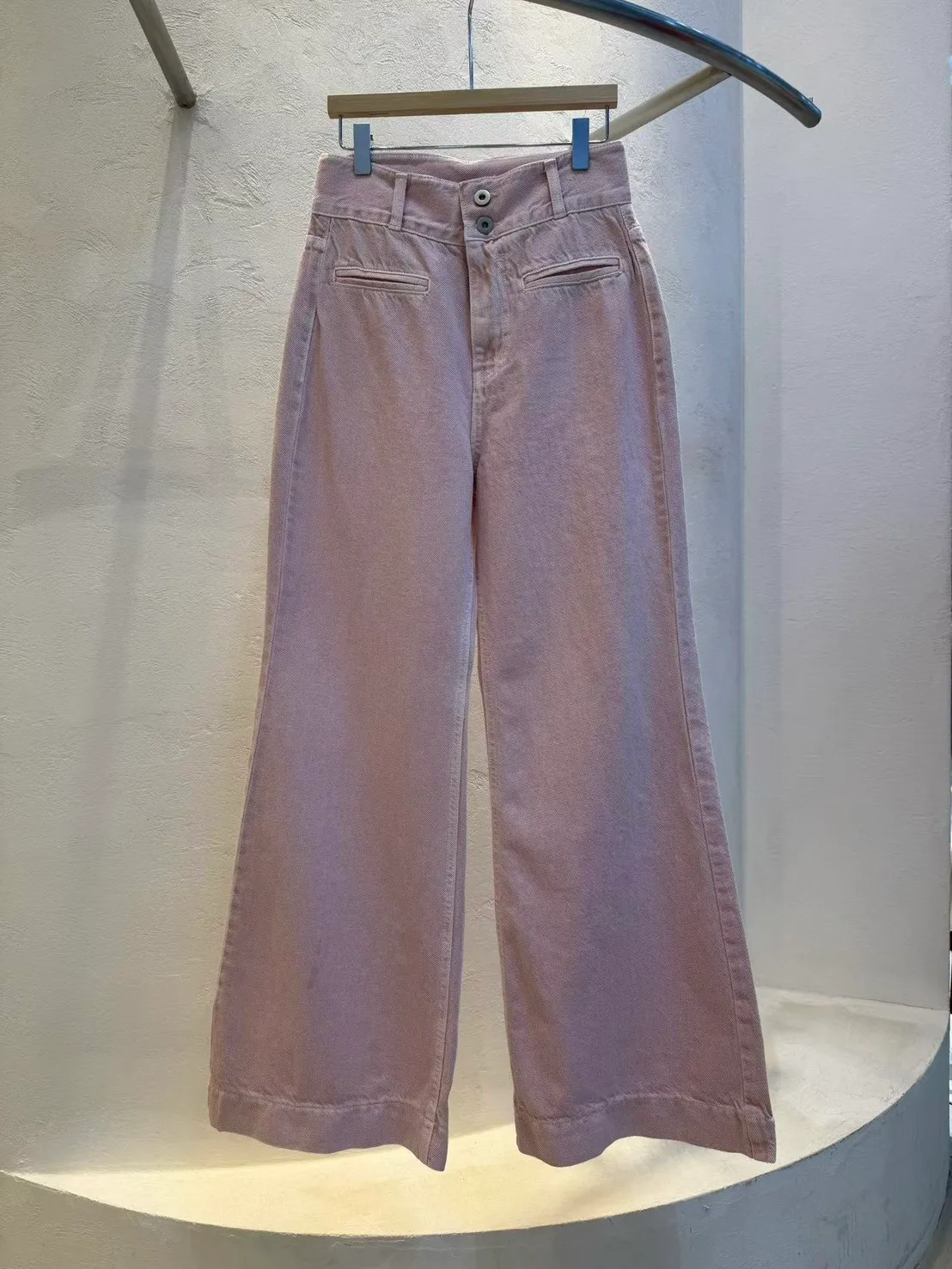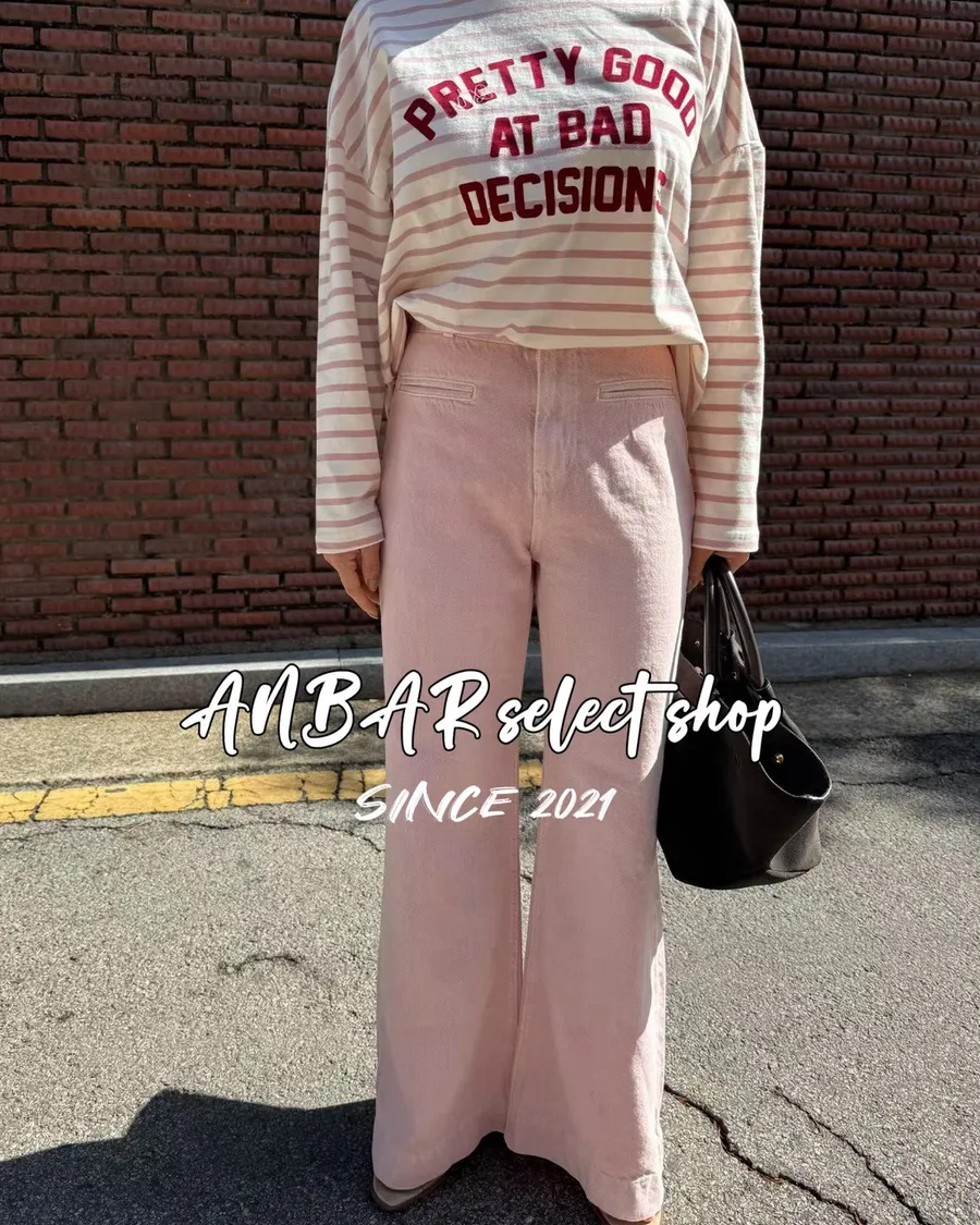 經典雙釦、高腰、微喇叭,很顯腿長的版型,
