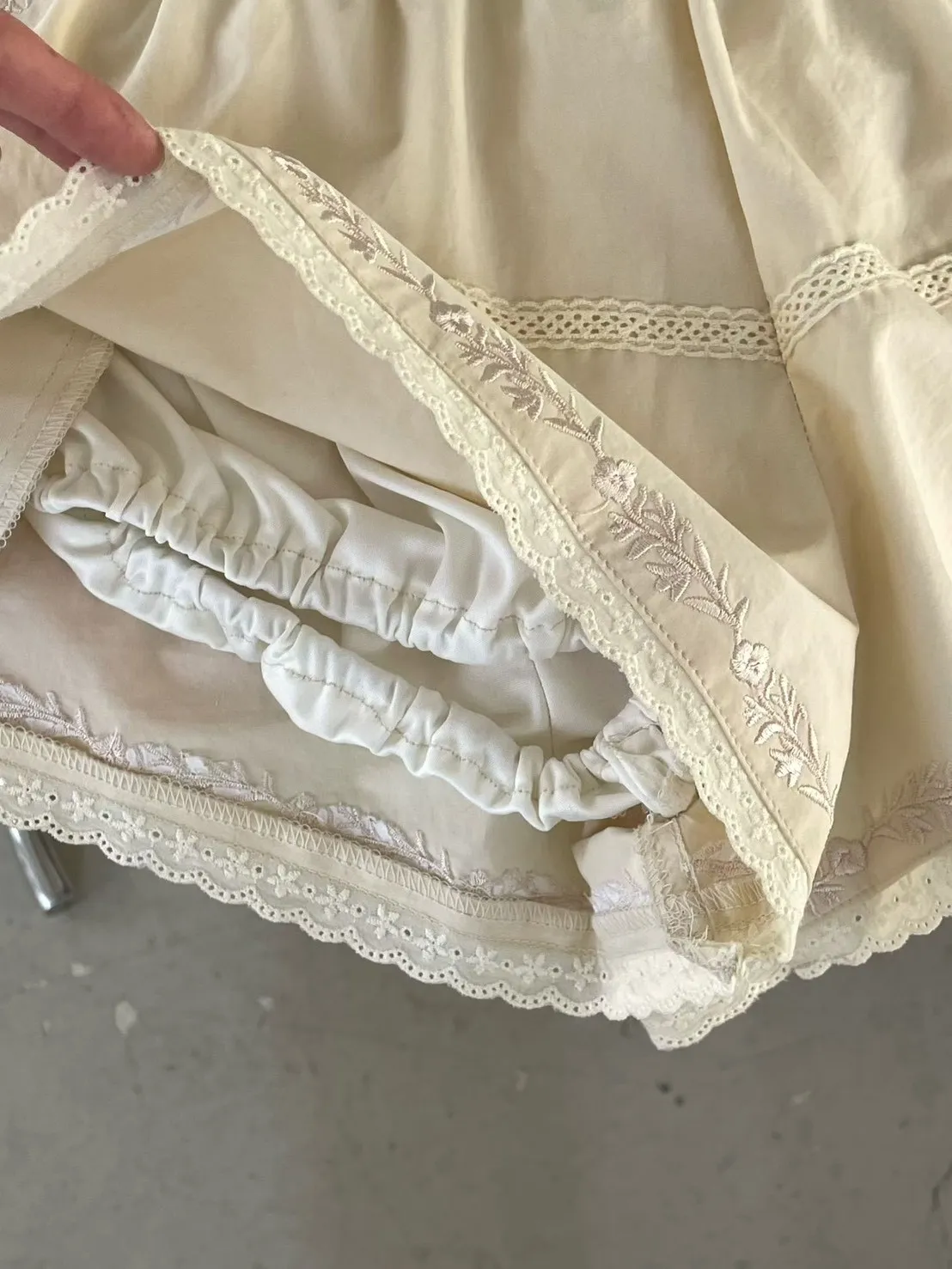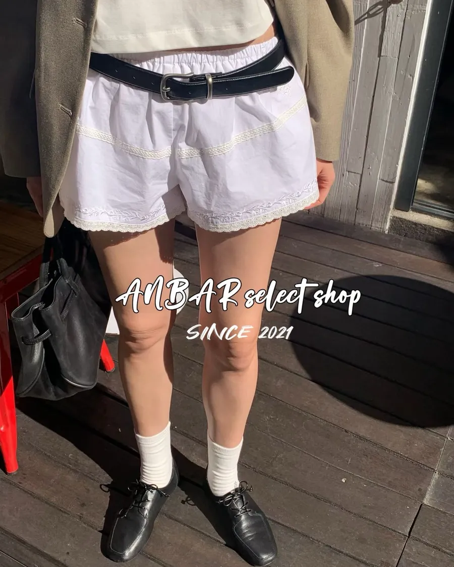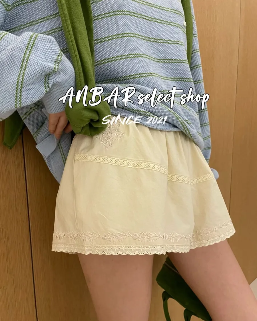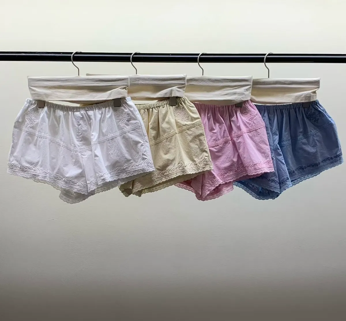 精緻的刺繡花朵點綴、布蕾絲褲管滾邊設計,
