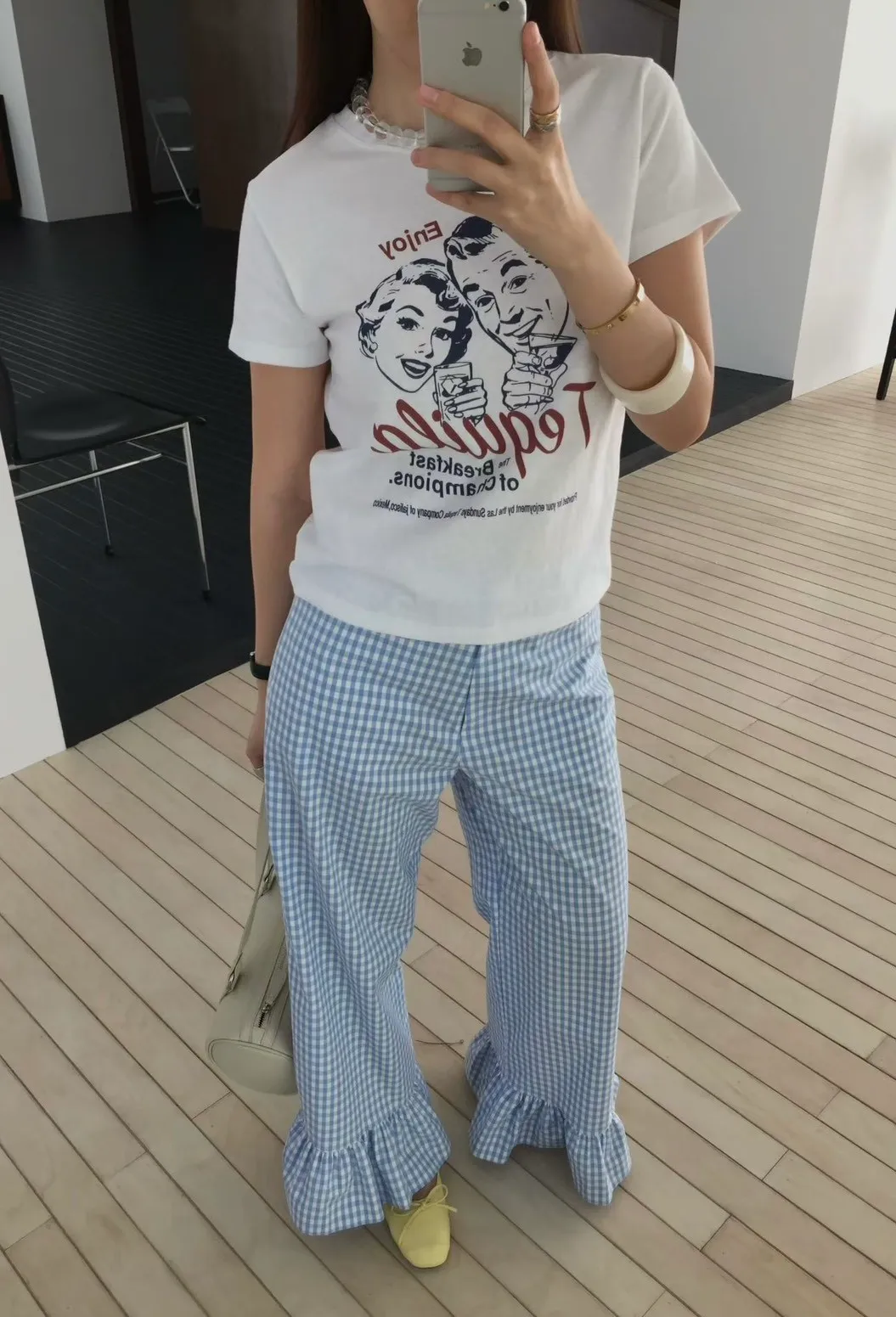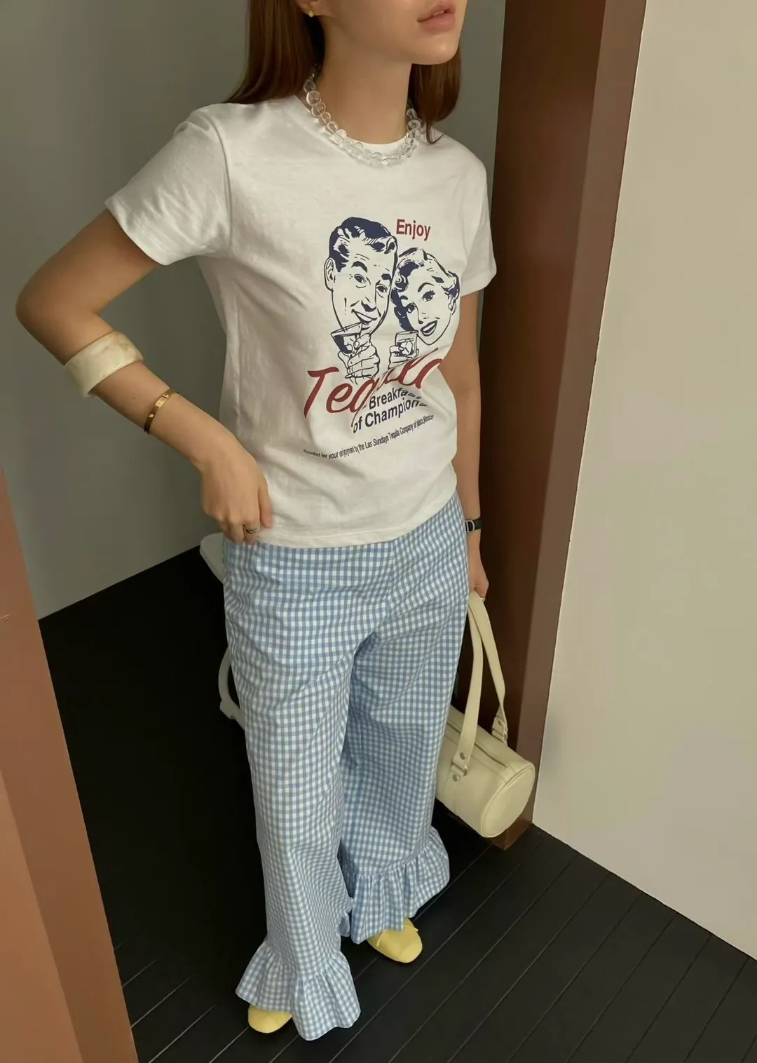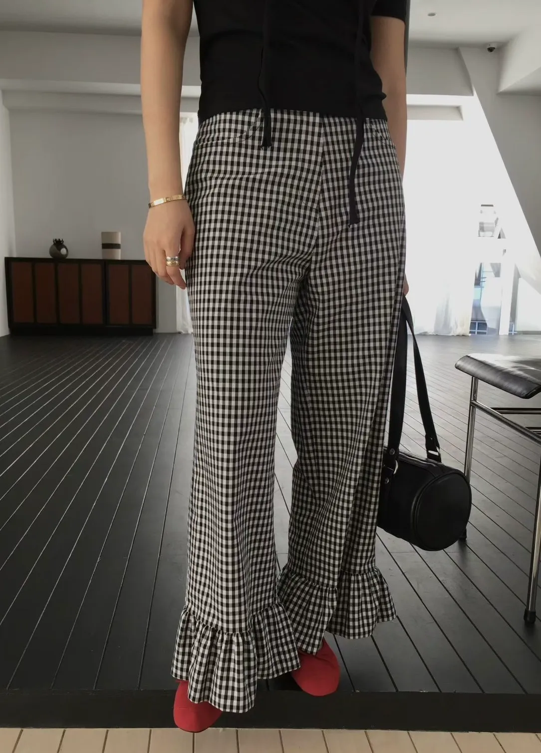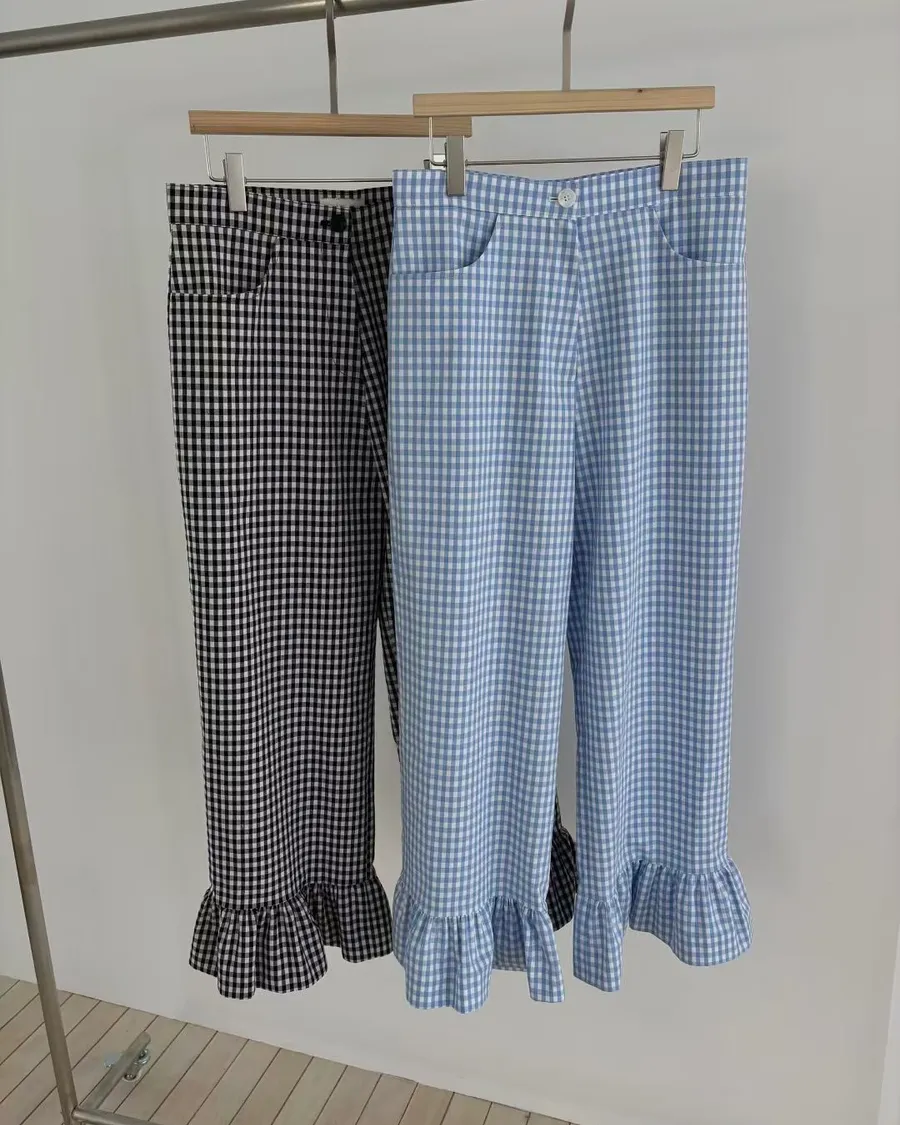從去年就很流行的荷葉花邊褲管設計,
