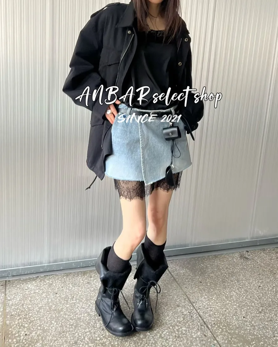 歐膩這樣疊搭牛仔短裙露出蕾絲裙襬,