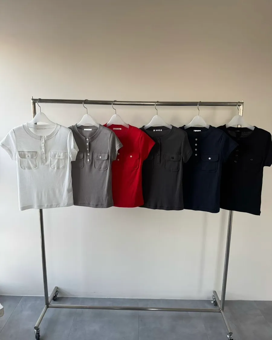 顯質感的亨利領,排釦半開襟、無領設計,