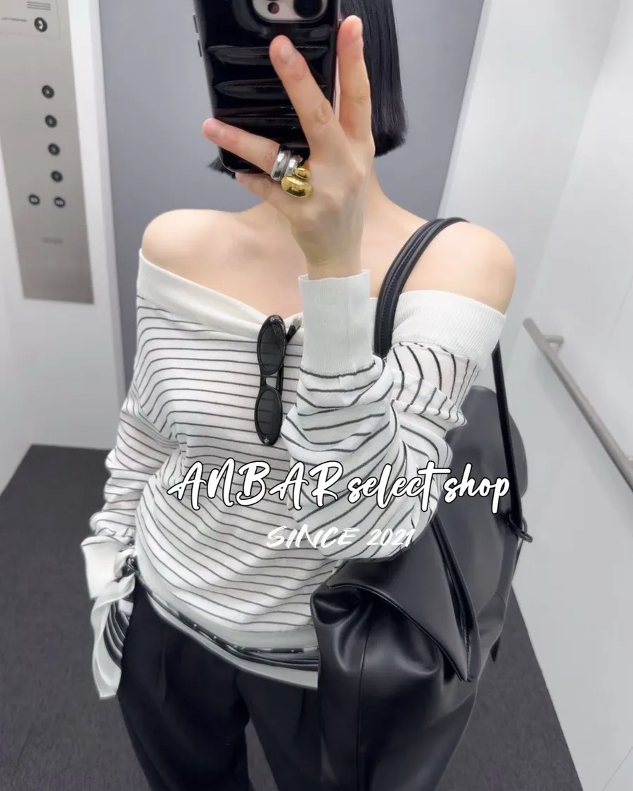 平肩設計,可以一字領、斜肩兩穿!
