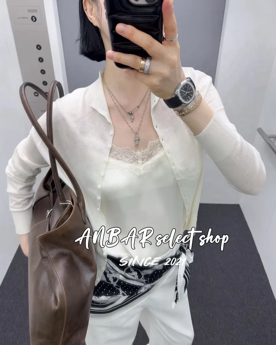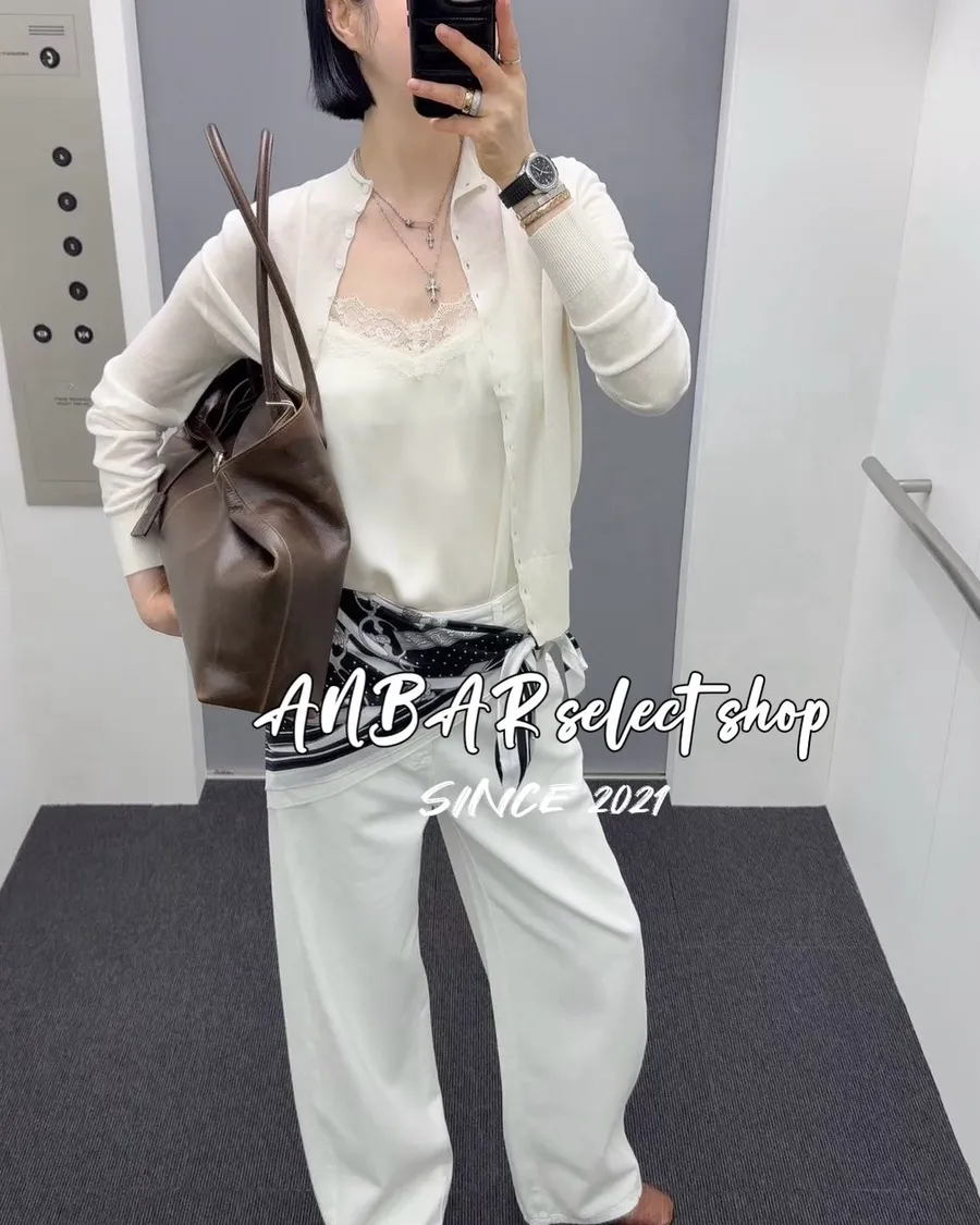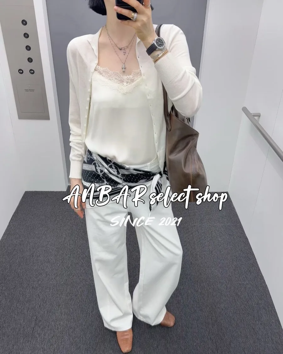 象牙白微透搭配今年流行的各種蕾絲背心很美!