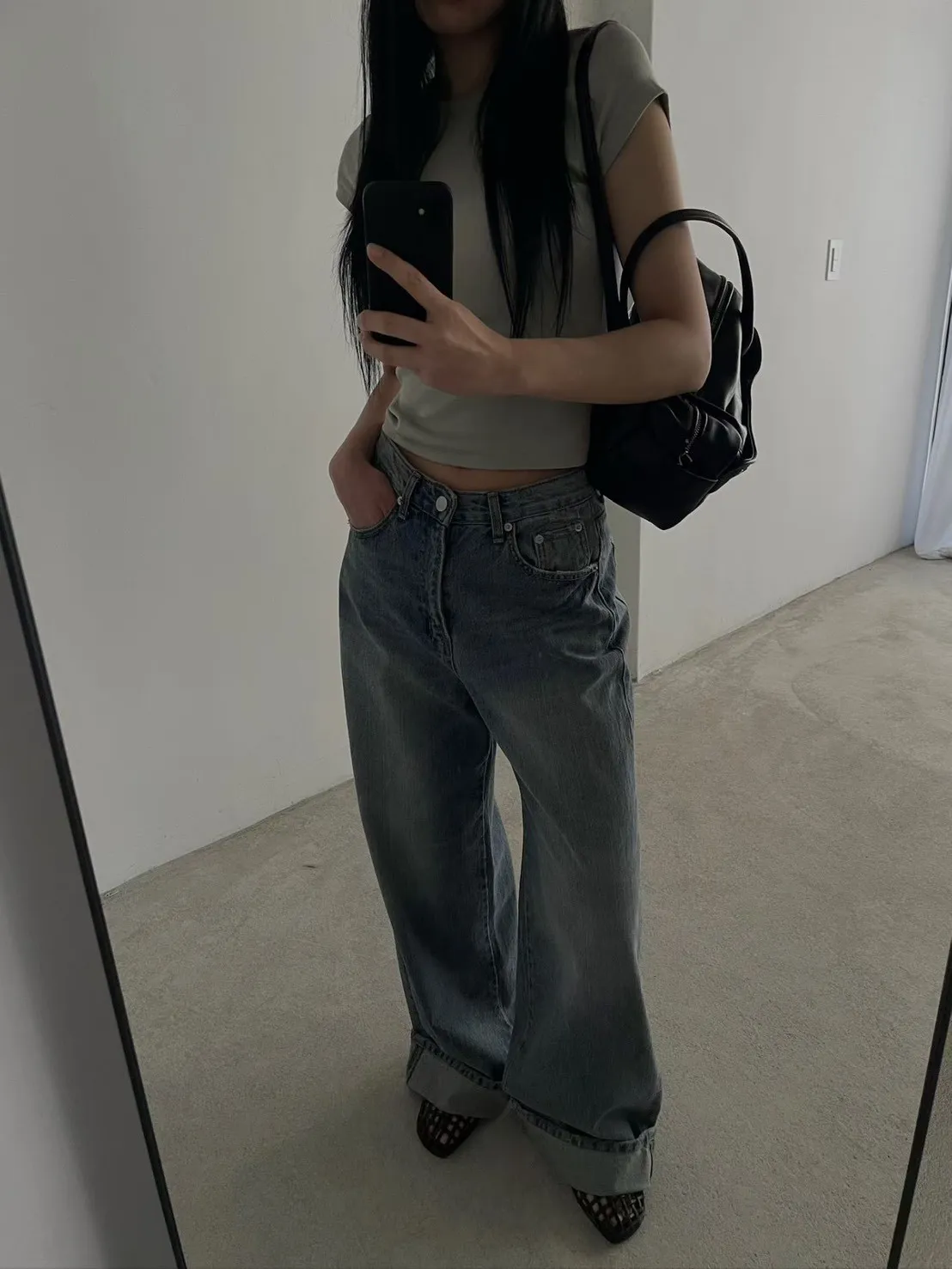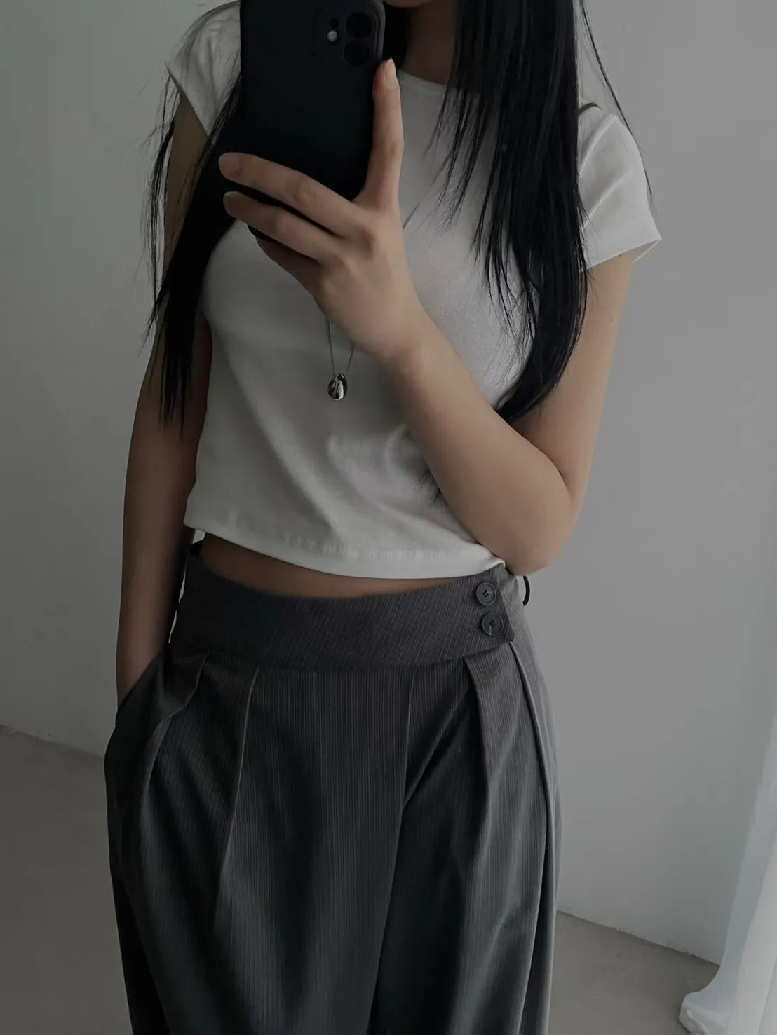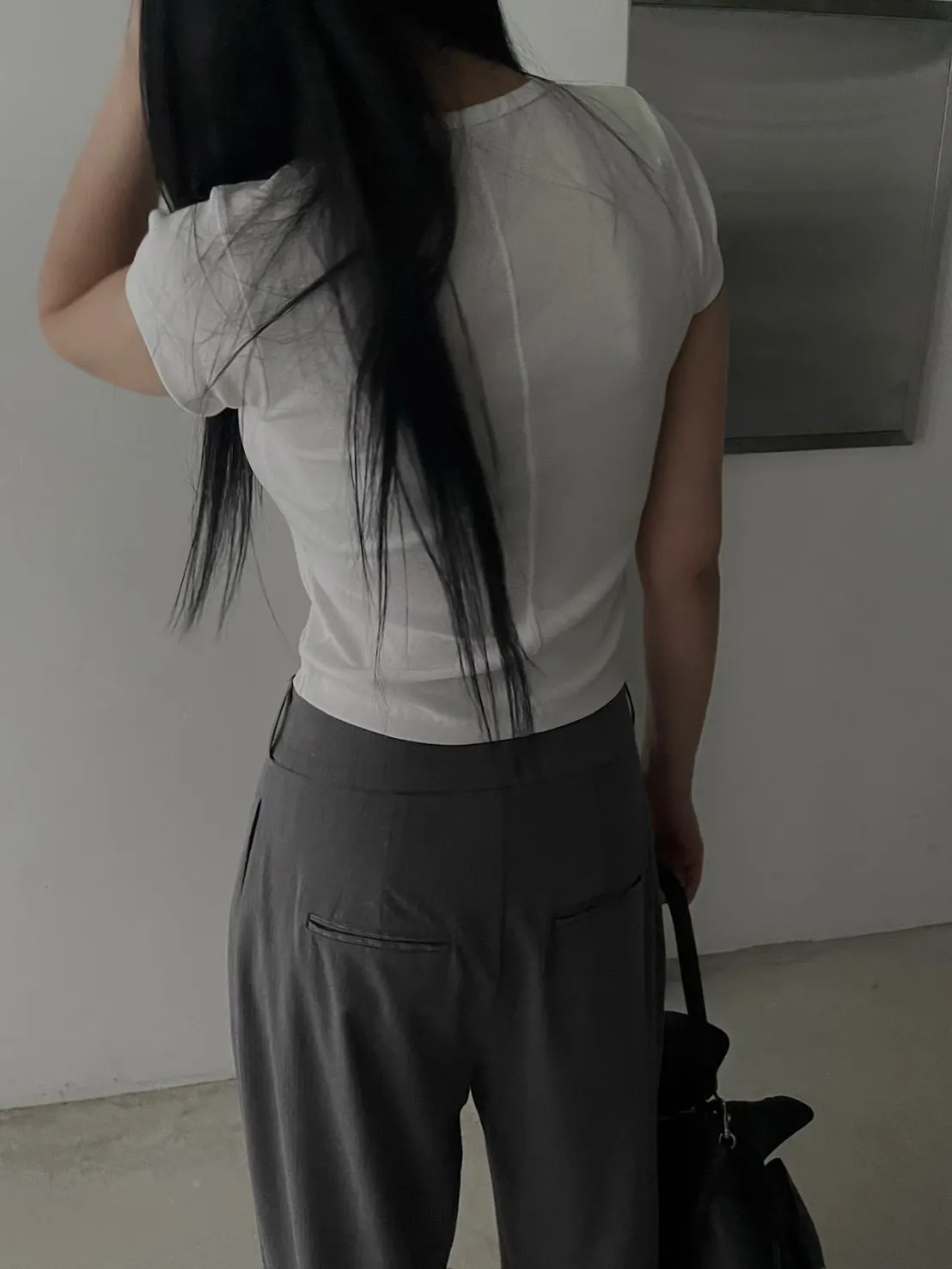 俐落的衣長,上身比例好看!