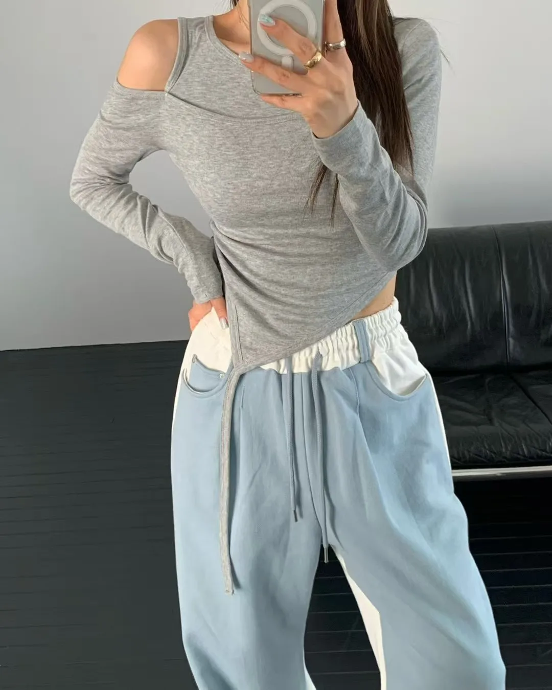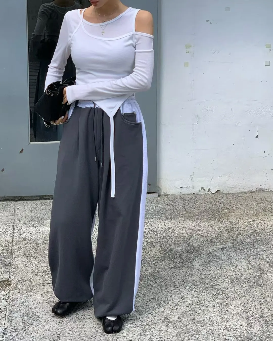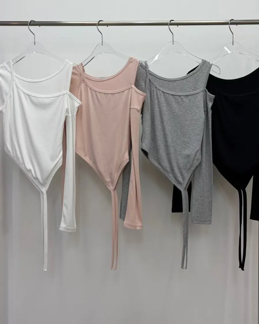 不對稱露肩、不規則下襬、垂帶設計,