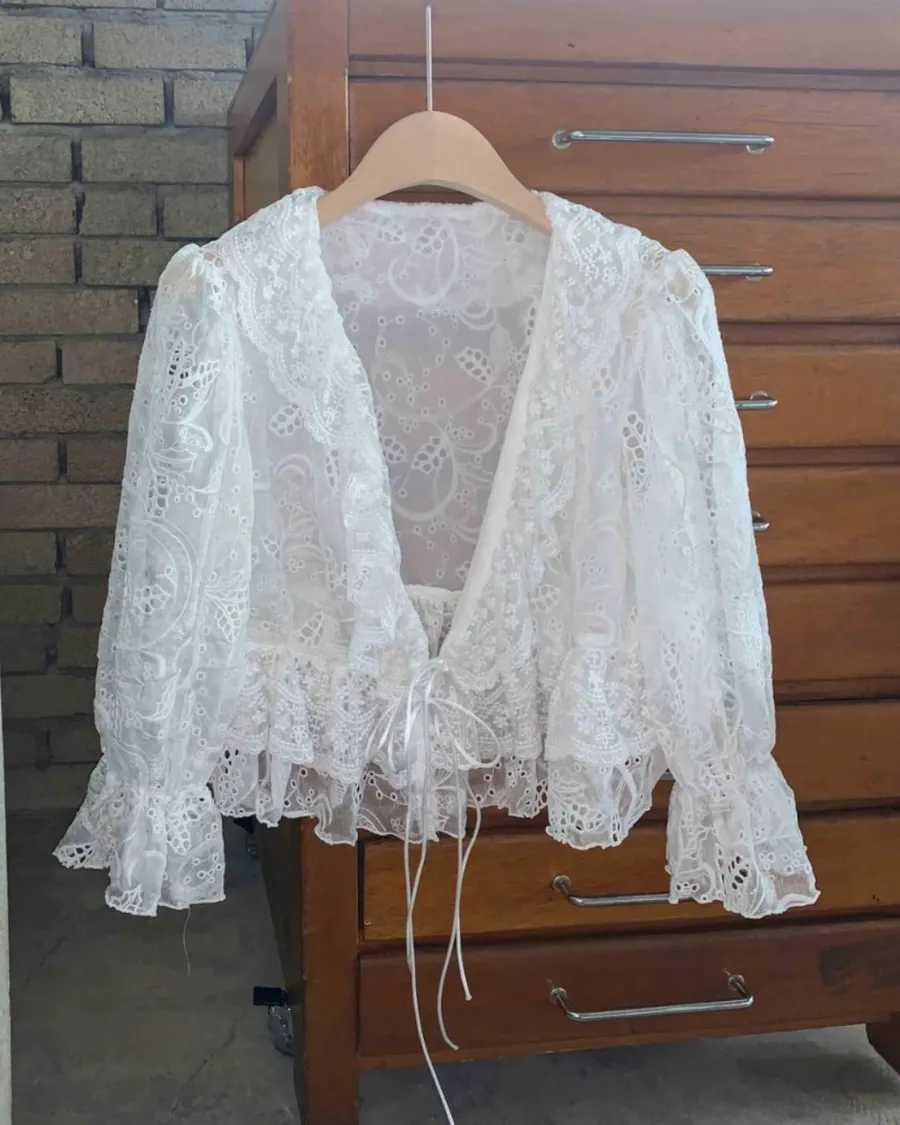 很重工、高級的一款蕾絲綁帶外罩衫!