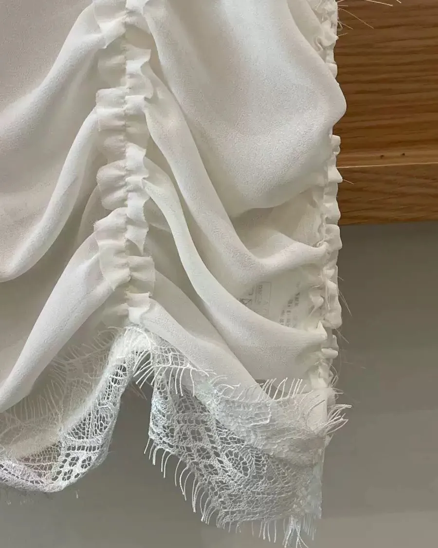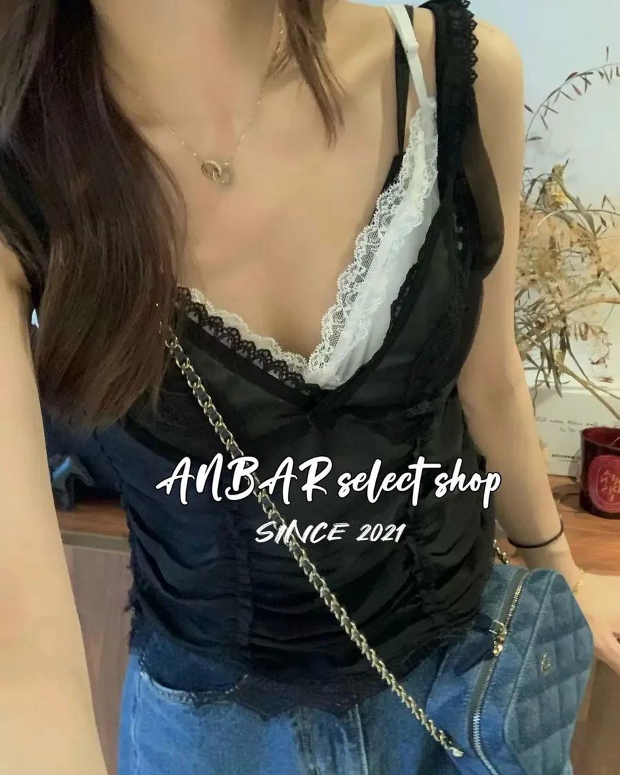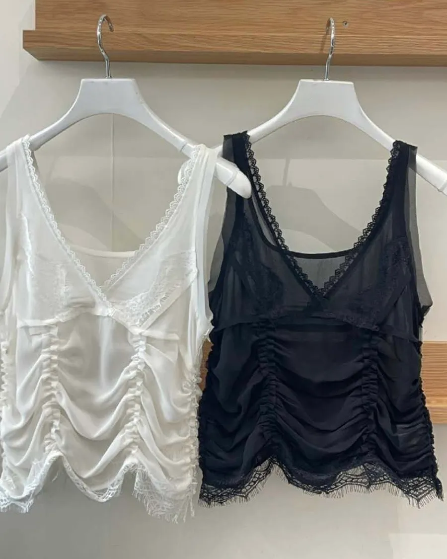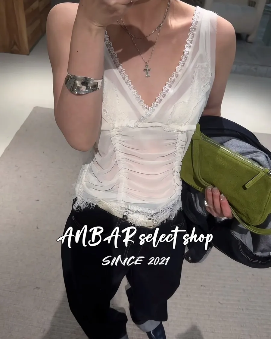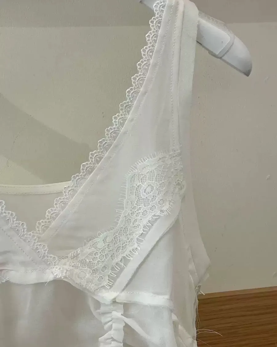 V領蕾絲滾邊,胸口、下襬睫毛蕾絲點綴,