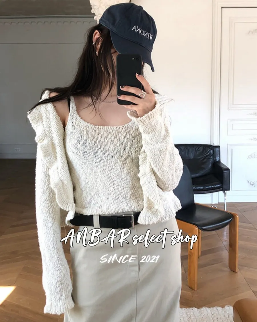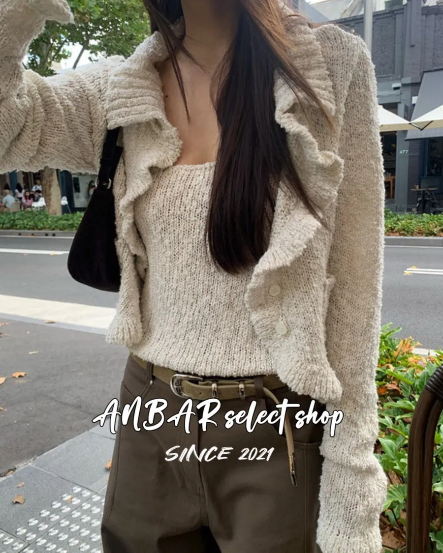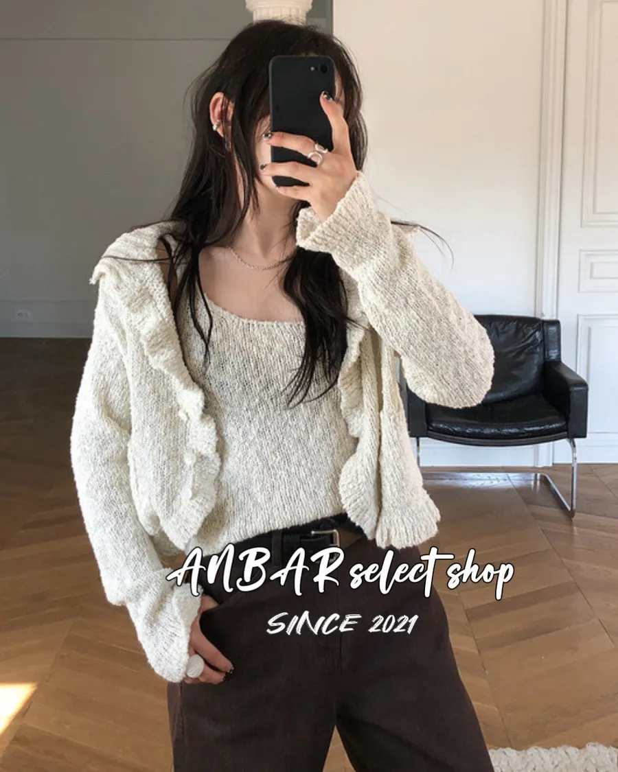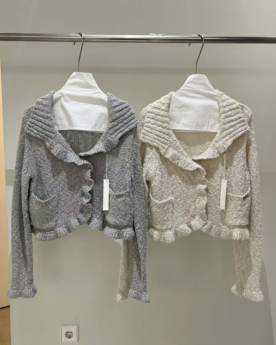 自帶氛圍感的荷葉花邊設計開衫兩件套,