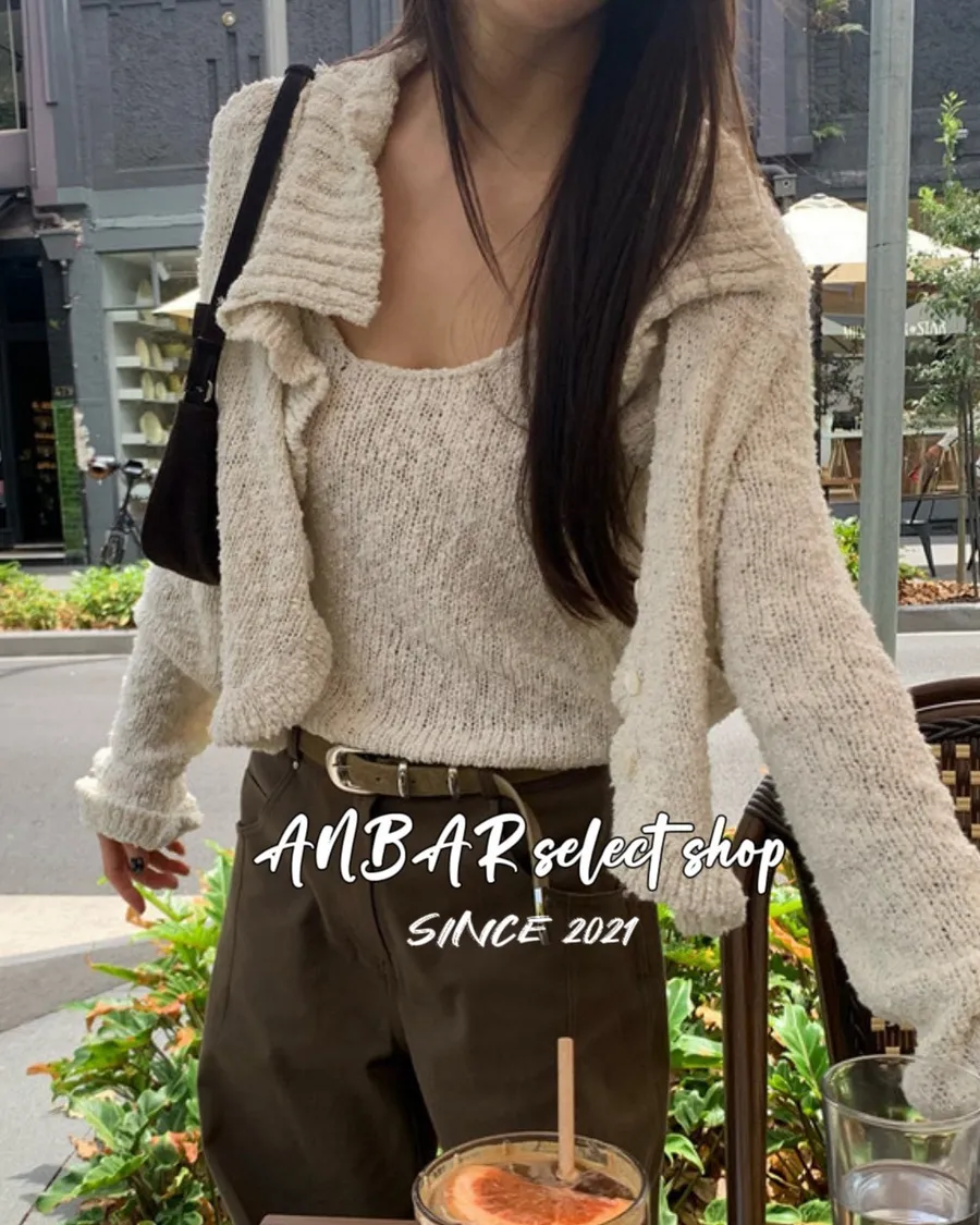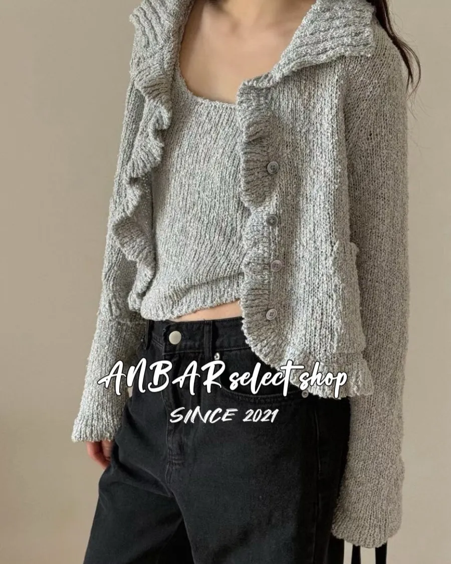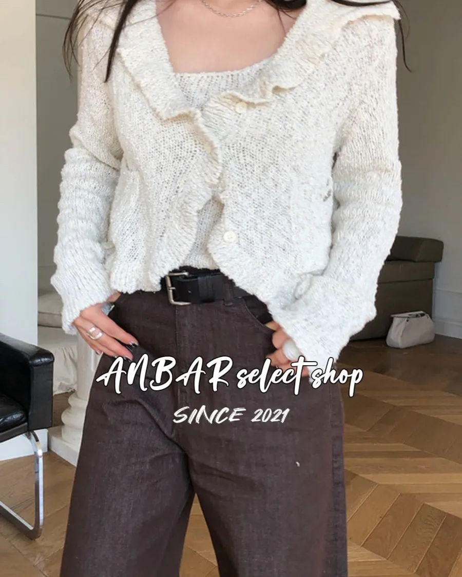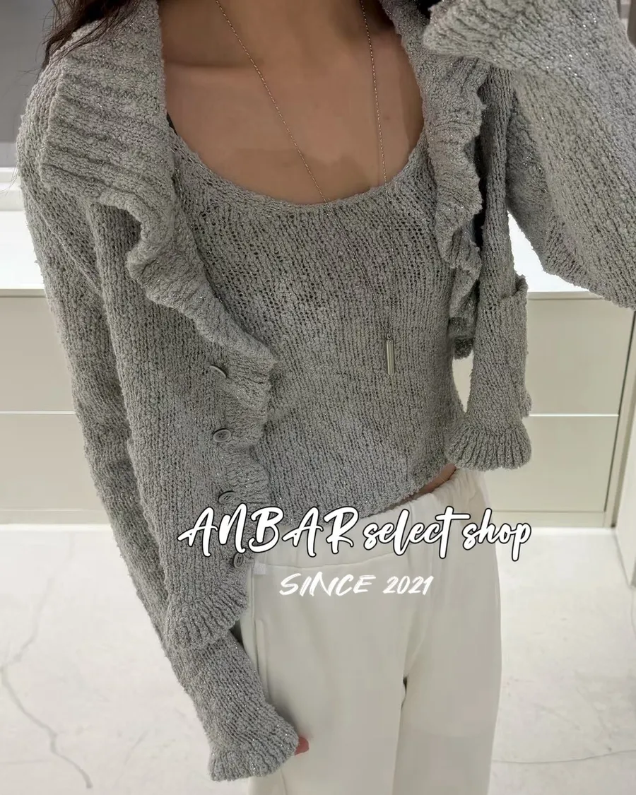 自帶氛圍感的荷葉花邊設計開衫兩件套,